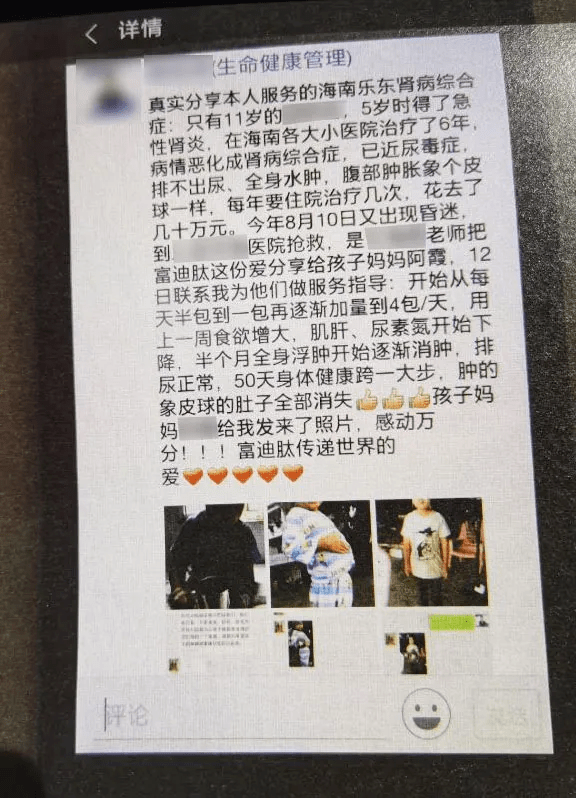面对这样的宣传,刘菊信了, 她花4万元买了约190盒产品,想给丈夫服用。然而, 在吃了大约150盒后,丈夫的病情并没有好转,刘菊便联系朋友,要求退掉剩余的产品,结果对方却一拖再拖,“2019年9月,对方答复我‘你自己处理’,然后把我拉黑了。”