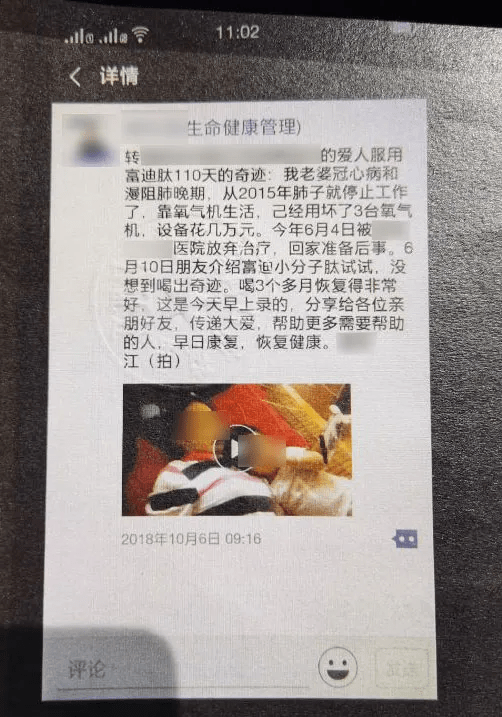 情急之下,刘菊从朋友处得知了这款固体饮料,“朋友说治好了很多癌症患者,还能增强免疫力。有些患者甚至都在准备后事了,吃了这款产品后出现奇迹。”
