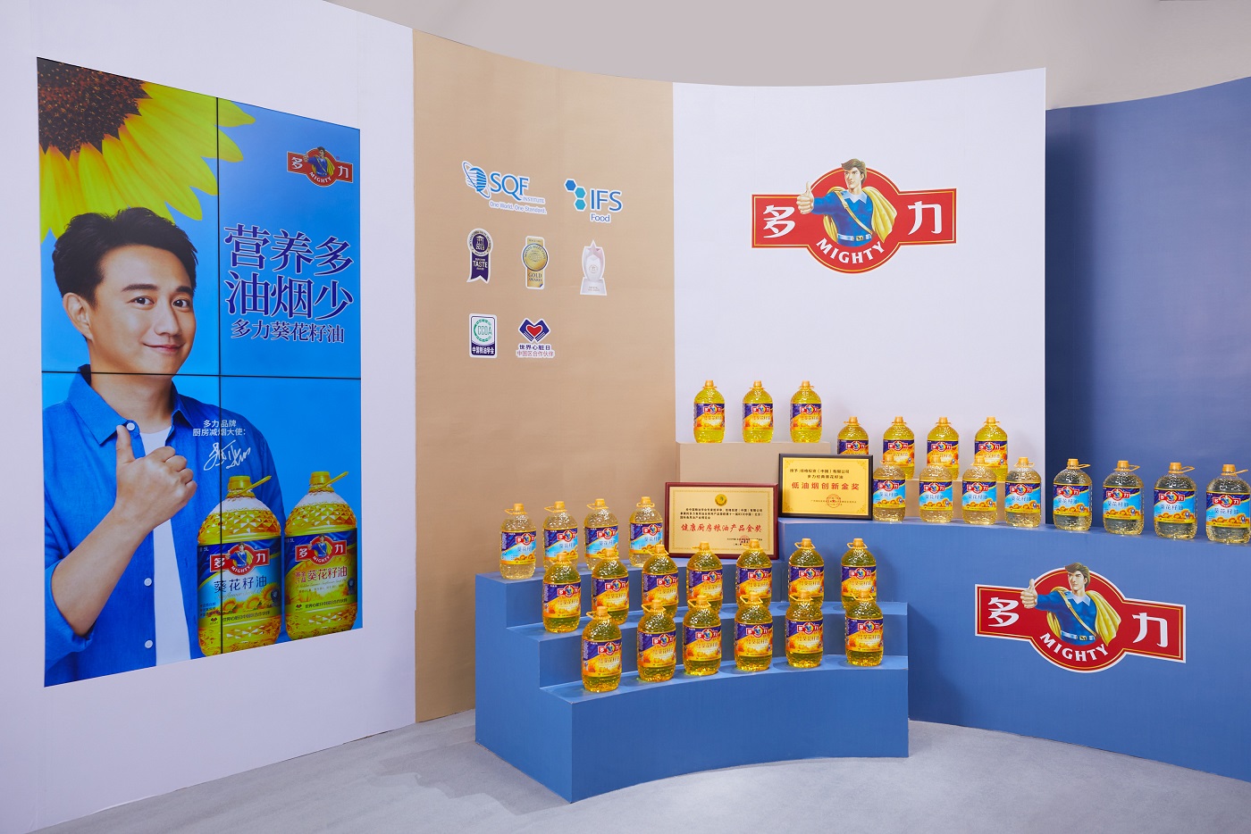 多力对于升级健康生活,除了前瞻性的科学理论研究,同时在产品升级和创新方面也是与时俱进的革新者。现场佳格集团研发总监-刘昌树先生介绍到:多力最新的一项千万厨房减烟计划,旗下产品多力经典葵花籽油在技术上采用七重精炼技术,革新理念,此次史无前例的创新升级也获得了广州国际食用油及橄榄油产业博览会“低油烟创新金奖”,这也正是多力的革新力和研发力的体现。