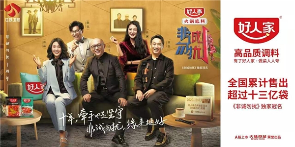 聚焦婚恋和生活,助力单身男女找到好人家的江苏卫视《非诚勿扰》多年来一直倡导积极、正向的爱情观、婚恋观,做有态度和品质的节目,10年生命力筑就“现象级”综艺。天味食品以“用美味创造美好生活”为企业使命,20多年“苛刻坚守好原料”,为消费者提供放心好产品,旗下“好人家”品牌更是在母公司上市之后开启了一轮品牌焕新计划。2020年12月19日,十年《非诚勿扰》首开品牌专场,孟非携手男嘉宾,阐述火锅态度,讲述火锅文化,美好生活就是一顿火锅,一切只因缘遇“好人家”。