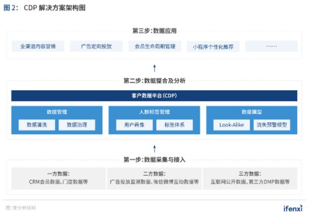 第一步,数据采集与接入,获取全渠道消费者数据。通过采集线上、线下触点的一、二、三方数据,如CRM客户数据、公众号互动数据、电商购买数据、门店数据、广告投放监测数据等,获取全渠道消费者信息。