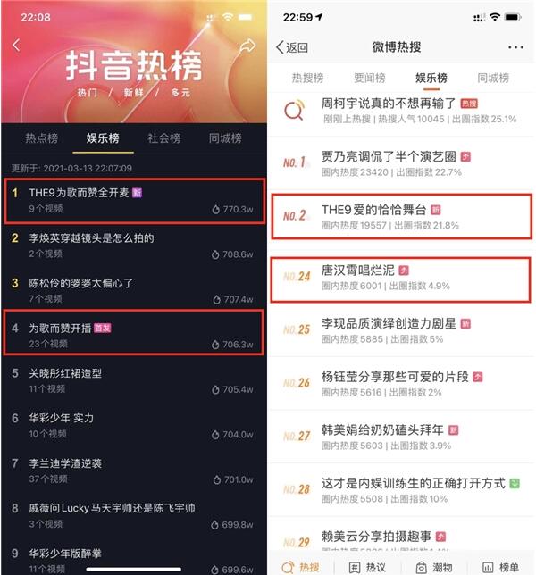 由“好人家高端火锅底料“赞助合作的《为歌而赞》热辣开播,播后4小时内全网收割4个热搜,抖音端观看量首播2小时破5000万,截止当晚23:35户参与互动投票超180万音符。不论是乐坛前辈“摇滚教父”崔健的开场献唱,还是情歌王子张信哲、励志天后张韵涵的先后出场都垫定了节目的高起点高定位,最终第一期以唱作歌手唐汉霄的新歌《烂泥》成为现场获赞最多的歌曲,THE9《爱的恰恰》不仅收获热搜,在抖音平台的点赞也排名第一;从节目首播看来,赛制创新和麻辣点评是其最大亮点。《为歌而赞》的热议,再现华语乐坛的实力唱将与新世代的年轻音乐人的同台对决,引爆不同圈层的音乐碰撞。