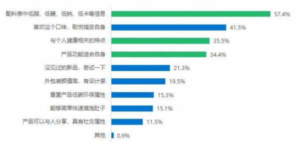 近年来,用户对于健康的关注度越来越高,根据巨量算数和36氪研究院发布的调查显示,“用户选购食品饮料产品时关注要素”中,前四个要素中有三个与健康相关。例如,低糖低钠、个人健康、功能适合自身都成为重要的选择因素。