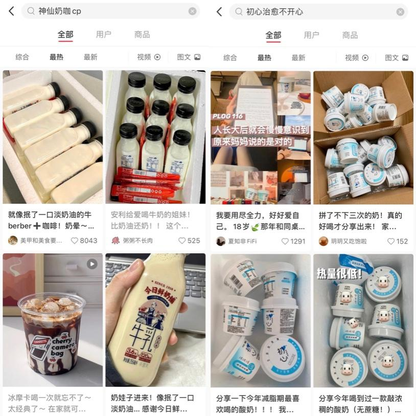 内容种草需要在内容社交平台上占领“热词”、抢占新话题。在#无糖酸奶 #初心治愈不开心 #神仙奶咖CP等话题中,均能看到新希望乳业产品相关的热门种草笔记。